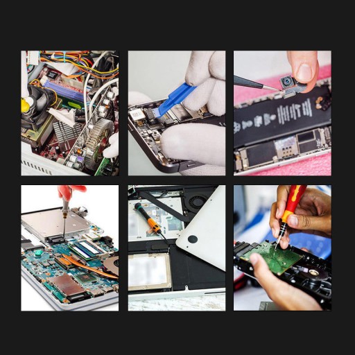 Zestaw został stworzony z myślą do otwierania telefonów, tabletów, nawigacji, kamer, laptopów i wszystkich innych urządzeń RTV AGD w których są niestandardowe wkręty.