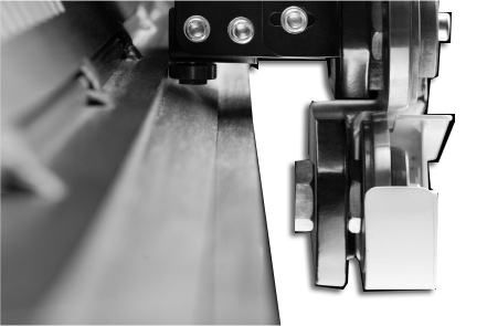 posiadają dwustronną blokadę zapobiegającą wypadaniu noża z prowadnicy. Dokładne 6 cm oddzielające nóż od maszyny znacznie ułatwia obliczenia dotyczące ciętej lub giętej blachy.