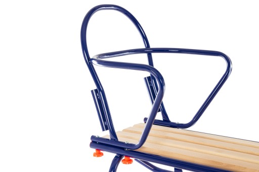 Sanki wykonane przez połączenie grubej rury stalowej i solidnego siedziska z bukowych desek.