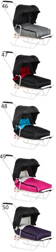 Sanki JEE MAX z oparciem i śpiworkiem dla dzieci i dorosłych.