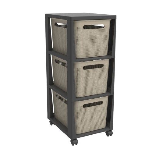Regał składany na kólkach z 3 koszami Rotho BRISEN - antracyt/cappuccino