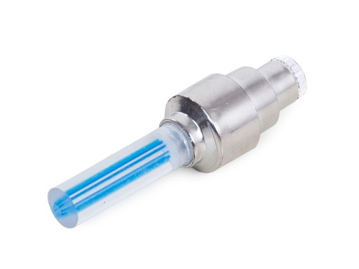 Wentyl posiada czujnik ruchu, a więc świeci tylko podczas jazdy. Dodatkowo w zestawie przejściówka na wentyl samochodowy oraz 3 sztuki baterii LR1130.