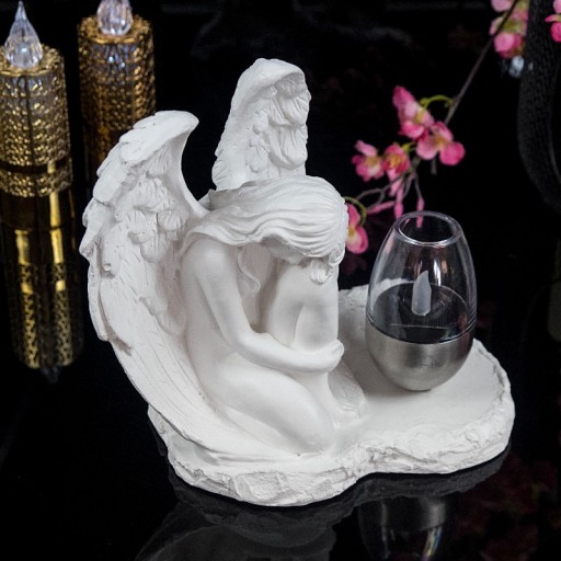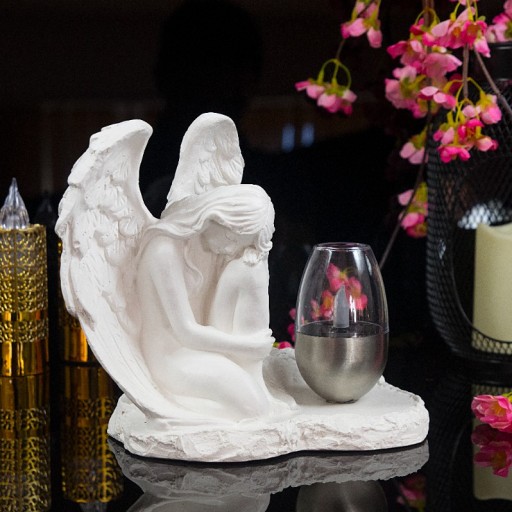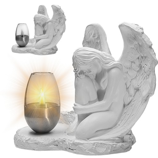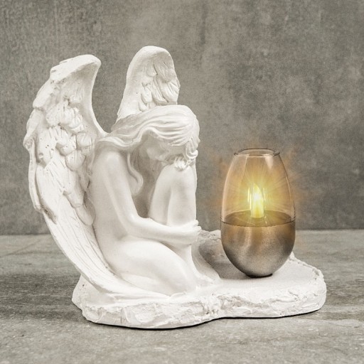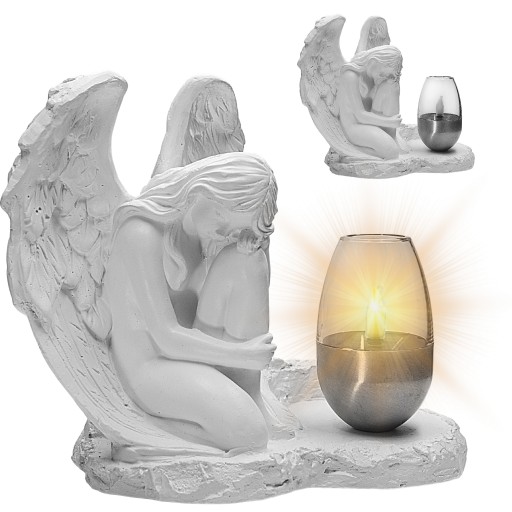 ➡️ Ozdobna gipsowa figurka ogrodowa, nagrobna z lampą LED w kształcie aniołka
