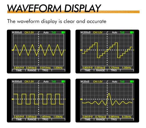 Funkcja Oscyloskopu + Multimetru 2 w 1 ✅ Posiada 2.4-calowy kolorowy ekran, wspaniały efekt wyświetlania! ✅ Udostępniliśmy pasmo na 1MHz z częstotliwością próbkowania 2.5Msps, co jest znacznie bardziej odpowiednie dla miłośników DIY.