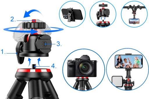 - Regulowana głowica 220° pozwoli Ci na ustawienie telefonu w pionie, poziomie lub pod dowolonym kątem aby uzyskać pożądany kadr.