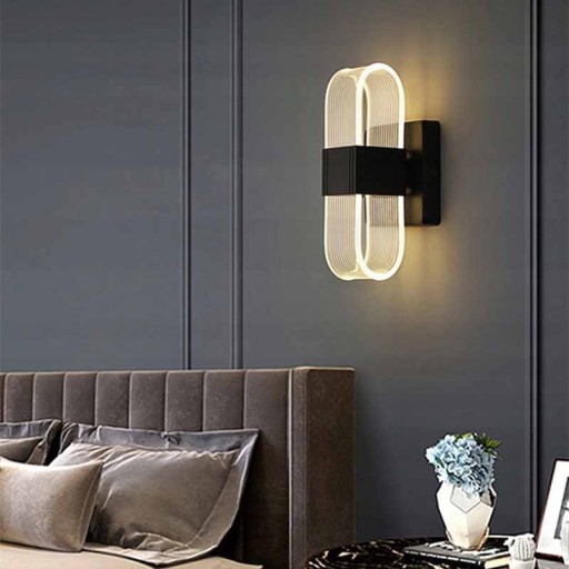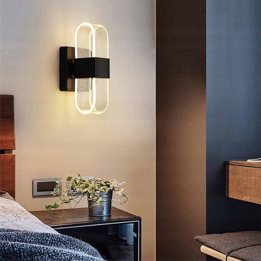 Nordic Akrylowy Kinkiet Ściemnialny Lampa Kryty Czarny Linie Paska