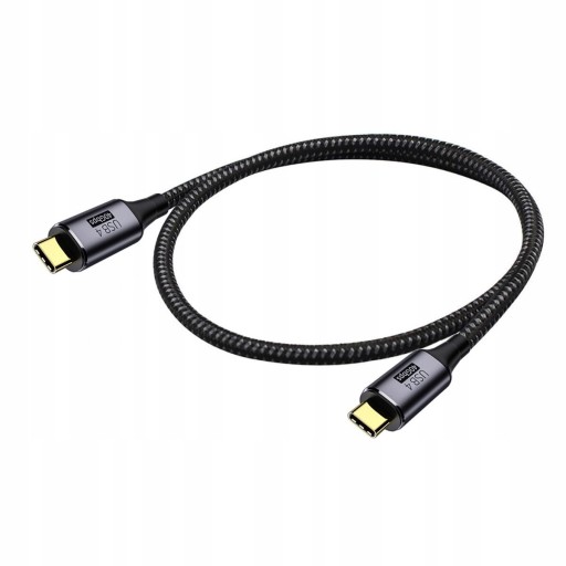 Oferowany kabel USB 4.0 został z obu stron zakończony wysokiej jakości złączami USB typu C z wytrzymałymi końcówkami oraz osłonami chroniącymi przed złamaniem wtyków. Dodatkową ochronę przewodu zapewnia nylonowy oplot o ciasnym splocie i wysokiej odporności na rozciąganie i rozdarcie.
