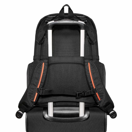 Everki Atlas pozwala bezpiecznie przewozić plecak na torbie podróżnej, specjalnie schowany pas pozwala przelozyc plecak przez uchwyt torby podróżnej.