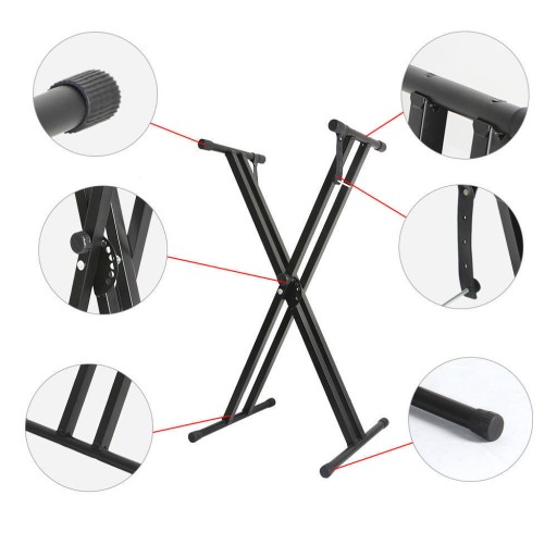 Statyw do instrumentów klawiszowych o podwójnej konstrukcji zwiększającej udźwig i stabilność.
