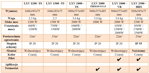 Promiennik na podczerwień LUXEVA - PORÓWNANIE MODELI: