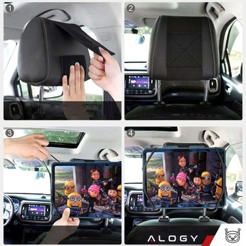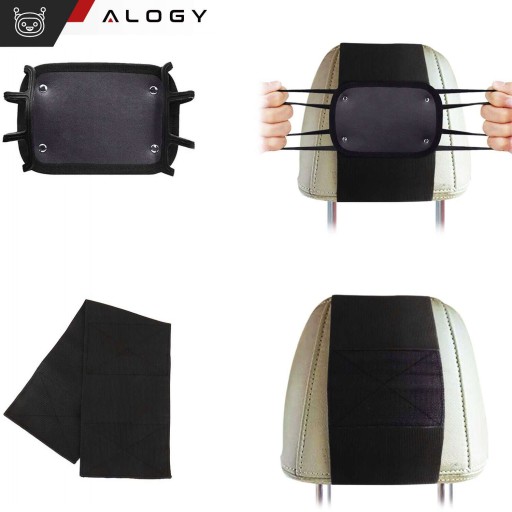 ▶️ Uchwyt samochodowy na zagłówek auta samochodu mocny rzep na tablet telefon czytnik Alogy Car elastyczny czarny