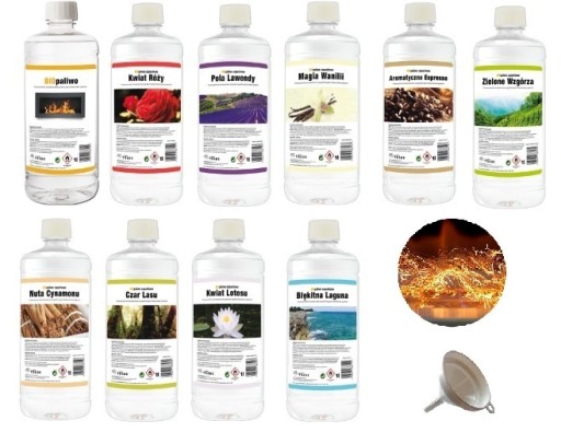 Zestaw startowy do biokominka - 10szt różnych biopaliw w butelkach po 1L + lejek GRATIS + efekt żarzenia