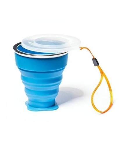 - składany silikonowy kubek turystyczny z pokrywką i stalowym rantem