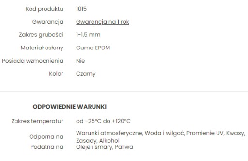 Osłona krawędziowa z gumy EPDM o zakresie grubości 1-1,5mm. Sprzedawana w metrach bieżących.