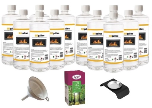PALIWO DO BIOKOMINKA 12 BUTELEK po 1litr + pojemnik do aromaterapii + olejek leśna polana + lejek