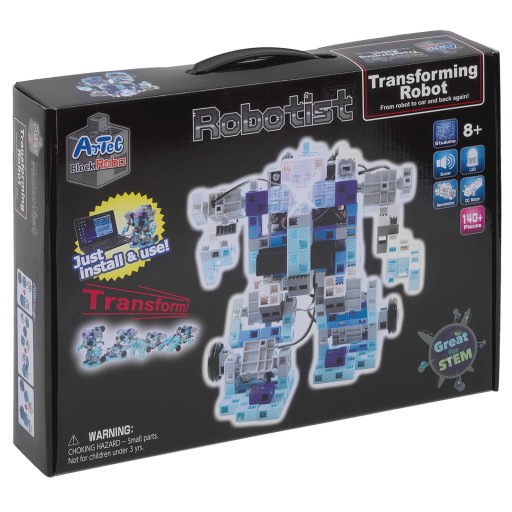 Konstruktor STEAM ArTeC Robotist Transforming Robot to uniwersalny zestaw ponad 140 elementów do samodzielnego złożenia ekscytującego robota, który można przekształcić w maszynę do pisania, a także z maszyny do pisania z powrotem do robota. Ten robot może także chodzić na dwóch nogach, jeździć na kołach i świecić latarkami. Zestaw doskonale nadaje się do nauki podstaw STEM (nauki ścisłe, technologia, inżynieria, matematyka).