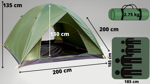 - ✅Namiot czteroosobowy (2 osoby dorosłe+2 dzieci lub 3 osoby dorosłe)