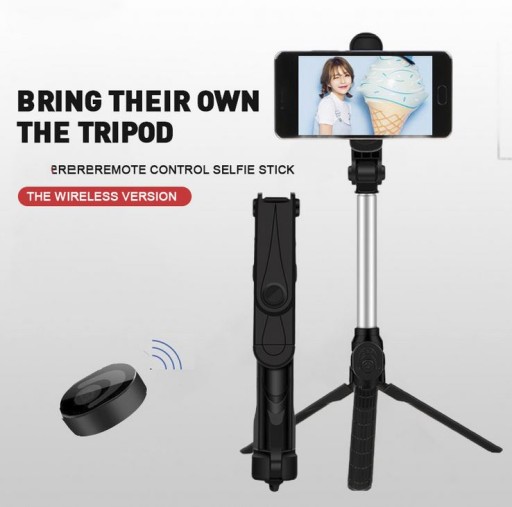- Uchwyt selfie stick z funkcją statywu i bezprzewodowym pilotem. Doskonały dla fanów fotografii.