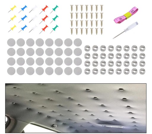 - Zestaw naprawczy jest wygodny w użyciu oraz łatwy w montażu. To doskonałe rozwiązanie dla każdego samochodu, w którym wymagana jest renowacja podsufitki.