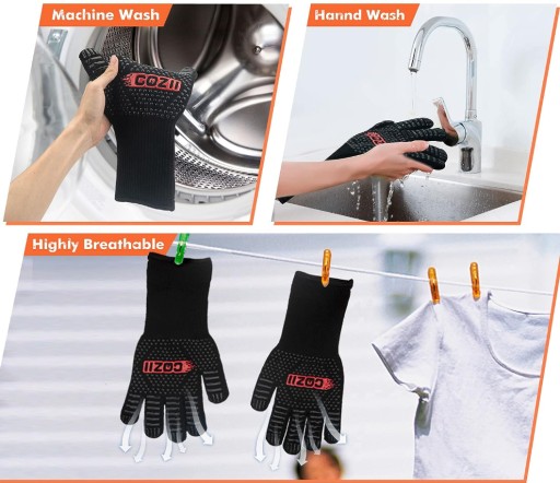 ✅ ŁATWE W CZYSZCZENIU - Po zakończonym grillowaniu, te rękawiczki są łatwe do czyszczenia. Możesz je szybko wypłukać lub umyć wodą i mydłem, co zapewnia wygodę użytkowania i higienę.