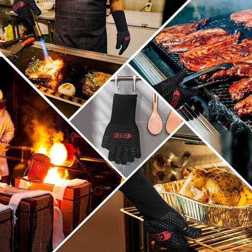 ✅ ODPORNOŚĆ DO 800 STOPNI - Dzięki swojej zaawansowanej konstrukcji termoodpornej, te rękawiczki są odporne na wysokie temperatury aż do 800 stopni Celsiusza. To daje pewność, że Twoje dłonie są bezpieczne podczas manipulacji gorącymi elementami grillowymi.