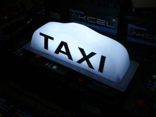 Sygnalizator TAXI z podstawą magnetyczną (bardzo silny magnes) - łatwy montaż !!! - wystarczy postawić na dachu i podłączyć zasilanie (12V). Szpakówka.