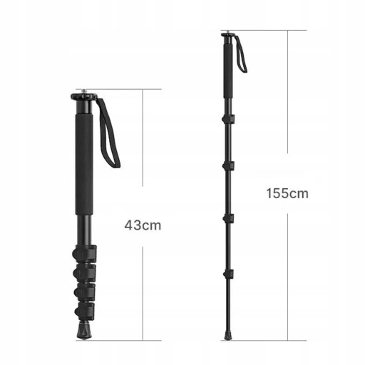 ✔️ WSZECHSTRONNA WYSOKOŚĆ - 5-sekcyjna konstrukcja pozwala na płynna regulację wysokości monopodu od 43cm do 155cm