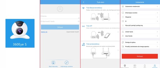 - Obsługa za pomocą aplikacji - aplikacja 360Eye S dostępna na Android (j. polski) oraz iOS (j.angielski)