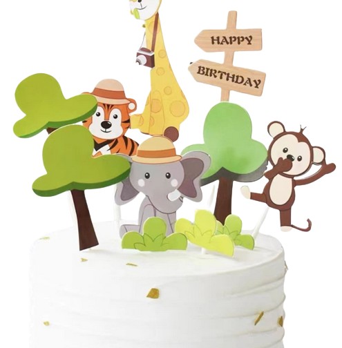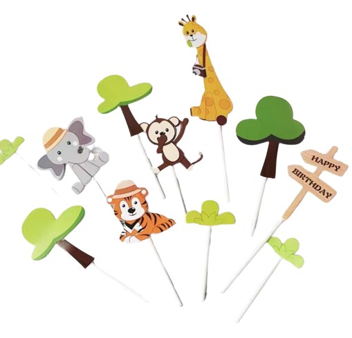 Jest to zestaw nakładek na ciasto dżungla, idealne do dekoracji tortów urodzinowych, babeczek.