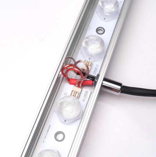 Przewód w profilu będzie zamontowany na środku, tak jak to widać na zdjęciach powyżej i poniżej. Dzięki takiemu umieszczeniu kabla lampa będzie bardziej stabilna.