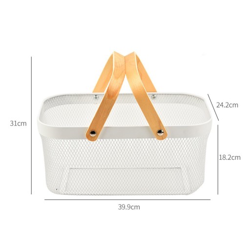 NOWOCZESNY METALOWY KOSZYK Z GRUBYM DREWNIANYM UCHWYTEM O UNIWERSALNYM ZASTOSOWANIU DO PRZECHOWYWANIA I PRZENOSZENIA