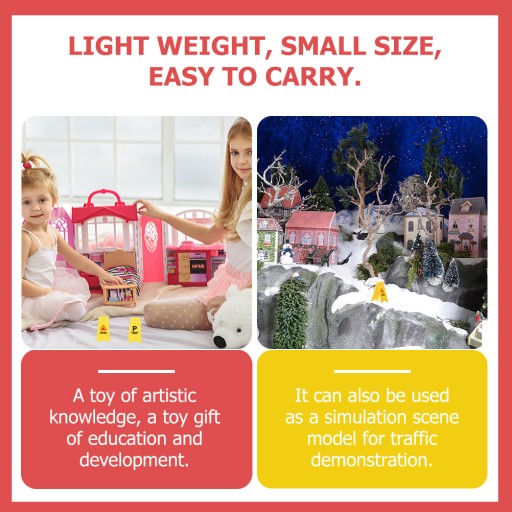 Te zabawki ze znakami drogowymi są produkowane z dobrego materiału do trwałego i trwałego użytkowania, poprawiają umiejętności praktyczne dzieci i wyobraźnię, są kreatywne i edukacyjne dla dzieci do zabawy. Mogą być również używane jako modele scen symulacyjnych do demonstracji ruchu.