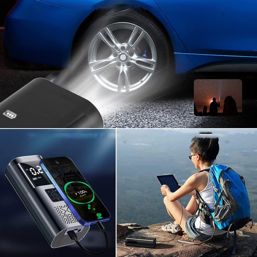 ⚽Wielofunkcyjna pompa powietrza: ta akumulatorowa sprężarka powietrza jest wyposażona w 4 dodatkowe adaptery do pompowania opon samochodowych/motocyklowych/rowerowych, kółek do pływania, kajaków, piłek nożnej, koszykówki, brodzików, śpiworów, namiotów i innych. Kompresor akumulatorowy jest mały, lekki i ergonomiczny, nadaje się jako sprzęt awaryjny podczas wyjść, podróży, jazdy na rowerze, biwakowania itp.