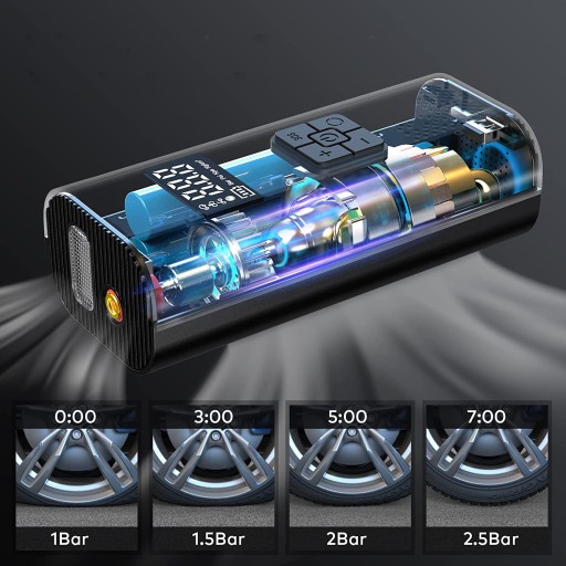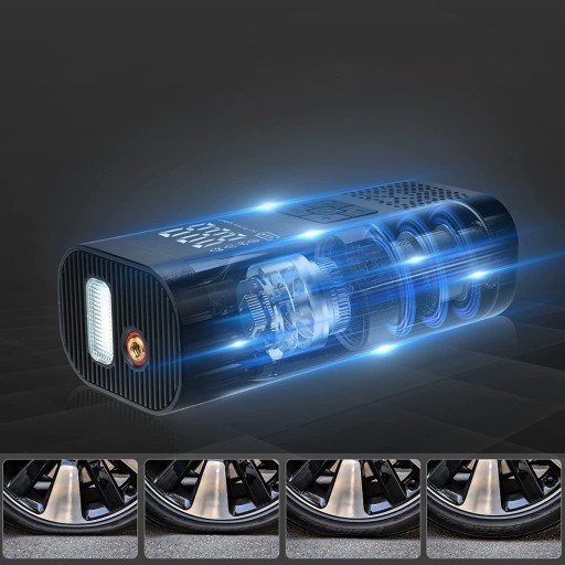 ⭕Automatyczna pompka powietrza: mocny silnik tej elektrycznej pompki może szybko napompować standardowe opony samochodowe. Maksymalne ciśnienie dostarczane przez sprężarkę powietrza wynosi 150 PSI. Zaprogramuj i monitoruj ciśnienie w oponach, wyłącz się automatycznie po osiągnięciu żądanego ciśnienia. W sytuacji awaryjnej rozwiązanie typu plug and play jest bardzo praktyczne. Inteligentna ochrona przed wiórami, automatyczne wyłączanie w przypadku przeciążenia i zwarcia.