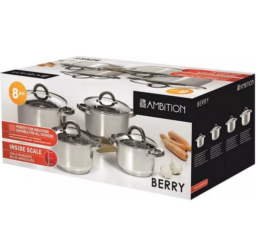 KOMPLET GARNKÓW BERRY 8 ELEMENTÓW ZE STALI NIERDZEWNEJ