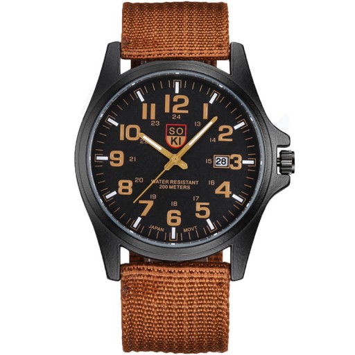 ЧАСЫ МУЖСКИЕ, ЧЕРНЫЙ РЕМЕШОК, КОРИЧНЕВЫЙ SOKI