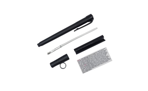 ✍️Tak wygląda prawidłowo wsunięta rurka. Teraz chwyć długopis za rurkę i kręć korpusem, a karteczka schowa się pod rurką. Złóż długopis i...