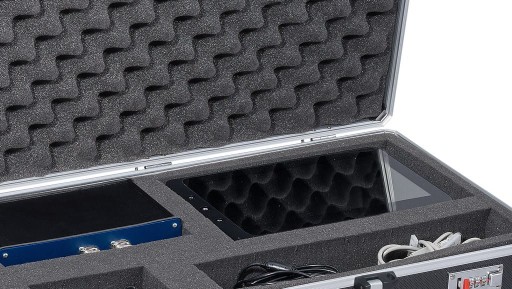 Wypełnienie z pianki, które jest elementem zestawu, ponacinane zostało w małe kwadraty, umożliwiające dowolne, samodzielne dopasowanie pianki do transportowanego przedmiotu.
