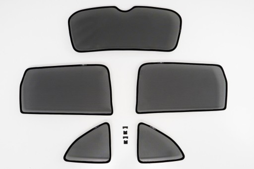 - Komplet 5 sztuk zasłonek magnetycznych (cztery na tylne boczne szyby i jedna na szybę klapy tylnej) + dodatkowe elementy montażowe