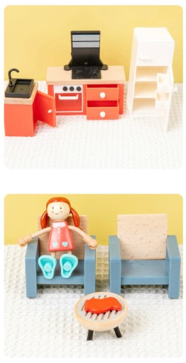 Twoje dziecko rozwinie umiejętność planowania, orientacji przestrzennej i zachowania porządku. Zestaw mebelków został wykonany z bardzo dobrej jakości materiałów i posłuży przez długi czas !