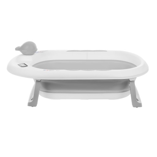 - Wanienka jest wyposażona elektroniczny czujnik temperatury, który pozwoli precyzyjnie określić właściwą temperaturę wody dla dziecka