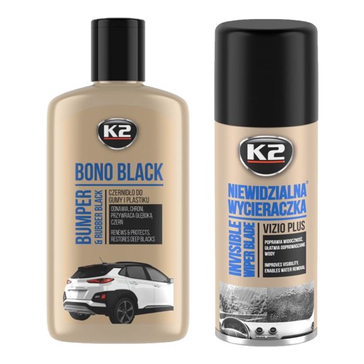 - 1 SZT. K2 BONO BLACK 200ml - to doskonały produkt do regeneracji wszystkich czarnych elementów plastikowych nadwozia oraz opon i uszczelek.