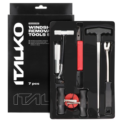 Zawiera wszystkie niezbędne elementy, które pozwolą zdemontować praktycznie każdą szybę samochodową.
