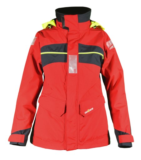 Wysokiej jakości kurtka żeglarska Crazy 4 Sailing model Bergen Woman. Przystosowana do żeglugi morskiej jak i śródlądowej. Wykonana z oddychającego i wodoodpornego poliamidu z powłoką poliuretanową. Posiada wysoki kołnierz i kieszenie z odpinaną podszewką z polaru. Kaptur odblaskowy chowany pod kołnierz, podwójne mankiety zapinane na rzep, taśmy odblaskowe, zaczep do kluczy, ścierka do okularów, regulowana talia.
