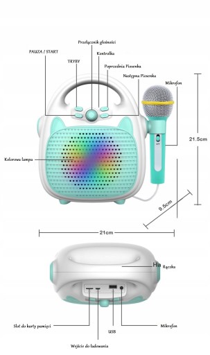 Uniwersalny odtwarzacz karaoke, który zdobył serca wielu dzieci i dorosłych dzięki zaokrąglonej obudowie, prostej obsłudze i licznym możliwościom odtwarzania.