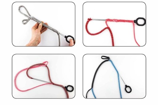 Za pomocą podwójnych igieł można chwycić linę i łatwo przeciągnąć ją wewnątrz innego kawałka liny.
