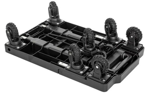 Po złożeniu, wózek transportowy zajmuje niewiele miejsca, dzięki czemu można go schować pod szafką warsztatową, kanapą w domu czy w bagażniku samochodu
