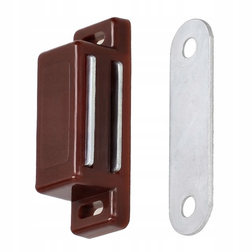 Zatrzask magnetyczny standardowy. Solidnie wykonany, wyposażony w mocny magnes. Stosowany w szafkach jako domykacz do drzwiczek.