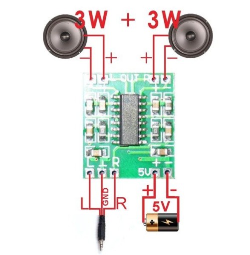 Mini moduł wzmacniacza stereo Audio 2x3W. Proste podłączenie i małe wymiary ułatwiają budowę urzadzeń audio