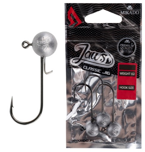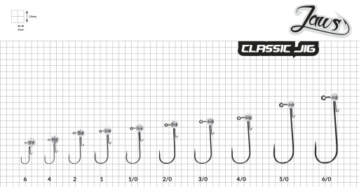 Jak sama nazwa wskazuje są to bardzo klasyczne główki, jednak klasyczne nie znaczy przeciętne. Najwyższej jakości haki stanowiące solidną bazę dla tych główek to tylko pierwszy z niekwestionowanych atutów. Kolejnym jest niewielki haczyk zapewniający stabilne utrzymywanie się przynęty na swoim miejscu jednocześnie nie rozrywający jej, jak to miało często miejsce w główkach z kołnierzem. Ostatni ale nie mniej ważny detal to opis znajdujący się na główce. Ile razy po wysypaniu różnych główek z paczek do pudełka zastanawialiście się jaki rozmiar haka teraz wybrać, dlatego na główkach Jaws Classic oprócz opisu gramatury, który jest już standardem pojawił się opis wielkości haka, aby jeszcze bardziej ułatwić wędkarzom dobór odpowiedniej główki.